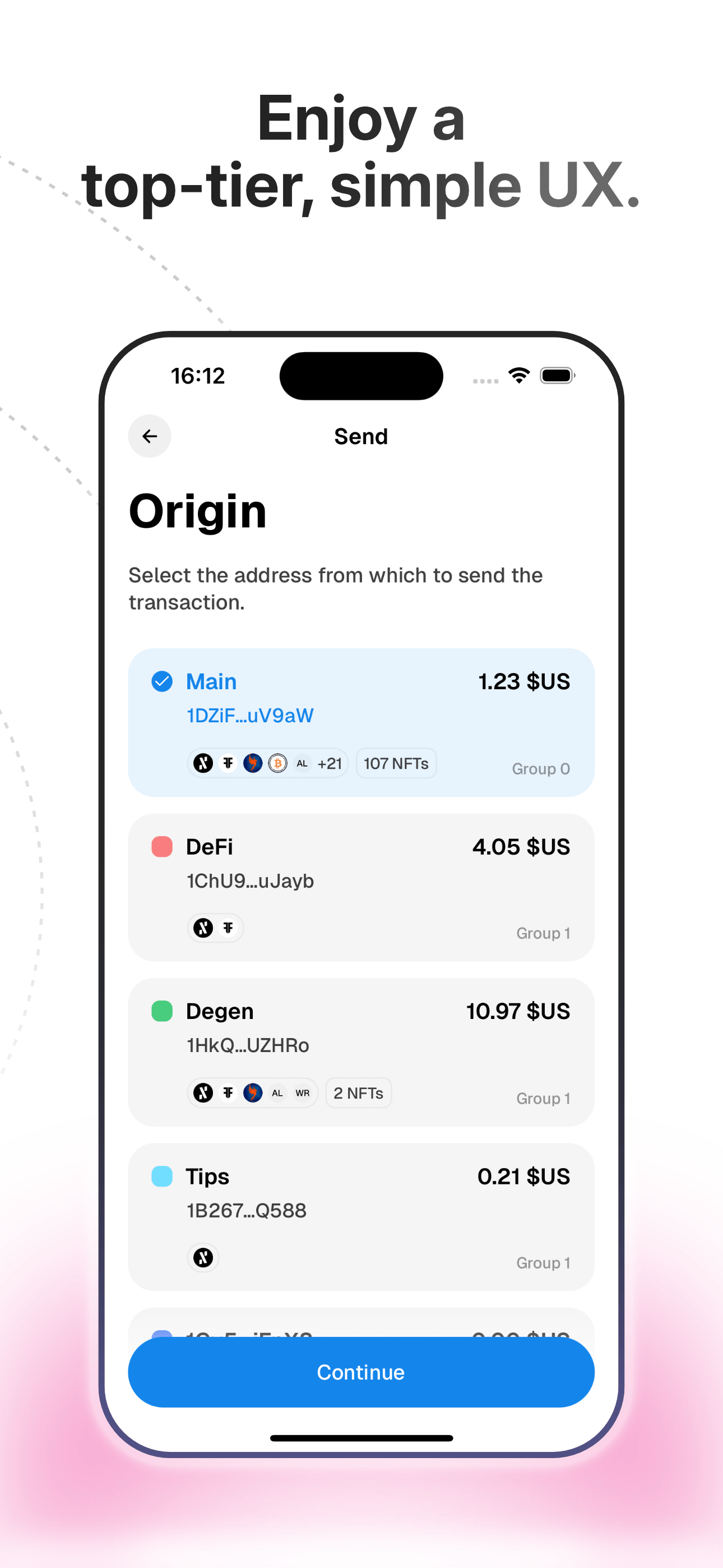 Features that require complex configuration or involve advanced security concepts are intentionally concentrated in the Desktop Wallet, which offers a more suitable environment for them.